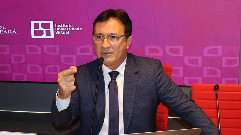 Na sequência, o reitor Custódio Almeida apresentou a perspectiva da UFC sobre a institucionalização da modalidade. O reitor detalhou proposta de modelo semipresencial que combina 50% de carga horária presencial e 50% assíncrona, com reorganização de horários acadêmicos, estruturação de equipes de apoio pedagógico e adequação aos mecanismos de controle de frequência nas atividades síncronas mediadas por tecnologia. Ele destacou que a EaD deve ser planejada como estratégia institucional de médio e longo prazo, articulada ao enfrentamento da ociosidade de vagas e à ampliação do acesso em regiões mais afastadas dos grandes centros.